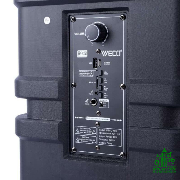 اسپیکر ویکو مدل WECO-100 یک اسپیکر بلوتوثی قابل حمل با امکانات متنوع است که برای استفاده در مهمانیها و فضاهای باز طراحی شده است.